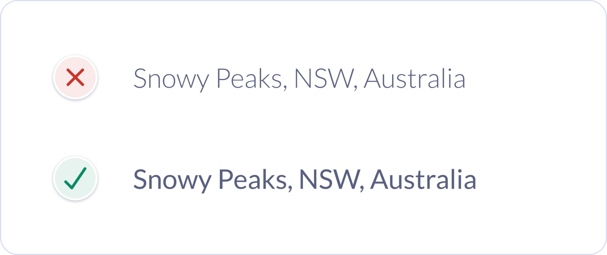 在我们的示例中,位置文本使用大写。将其更改为句子大小写,其中只有第一个单词和专有名词(人名、地点或事物的名称)大写,有助于提高可读性。