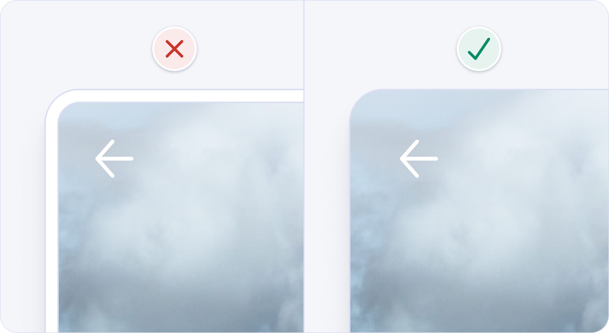 在我们的示例中,箭头图标对比度太低。为图标添加阴影并在图像的顶部三分之一处添加渐变叠加,无论图标位于哪个图像上,都可以提供足够的 3:1 对比度。