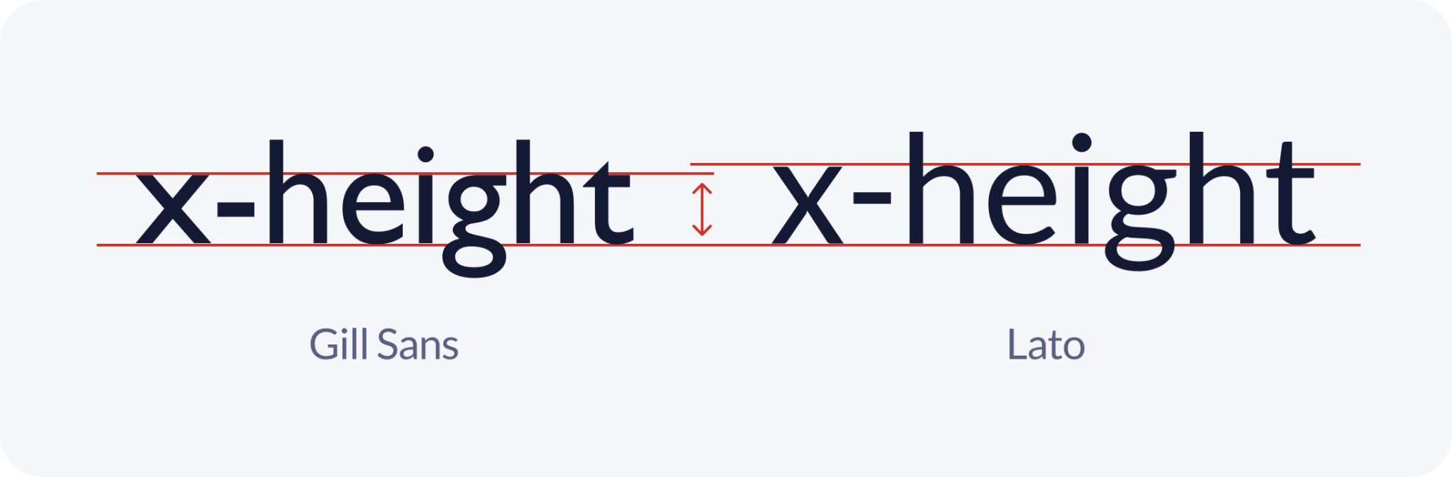 我们的示例使用 Gill Sans 字体,该字体的 x height 相对较低。将字体更改为具有较大 x height 的字体(如 Lato),有助于提高可读性。