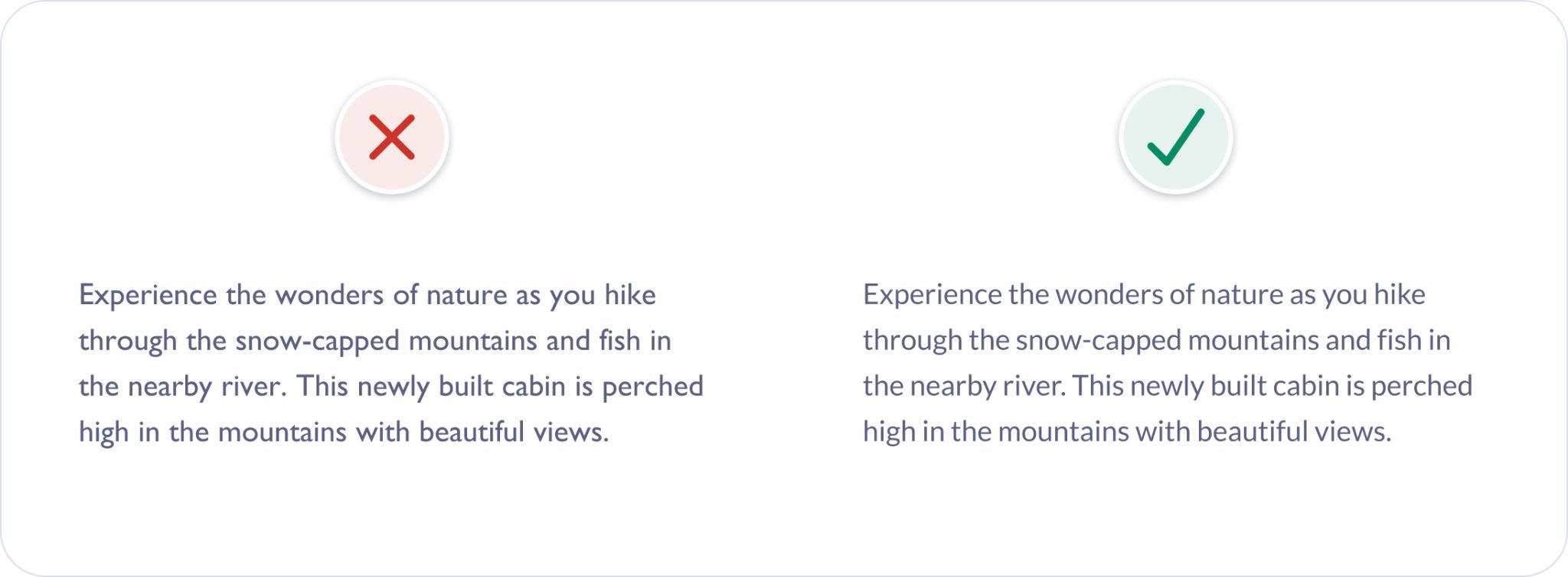 为了提高可访问性和可读性,尤其是对于长正文文本,请确保行高至少为 1.5 (150%)。将线高保持在 1.5 到 2 之间通常效果很好。